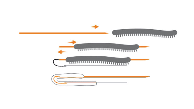Otras especies que son delgadas pueden enrollarse para ensartarlas dos veces y dar un mejor agarre. Lo mejor es que la lombriz quedé en una posición que simule su movimiento natural.